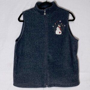 Vintage Northern Reflections Grey Fleece Zip Vest With Snowman M