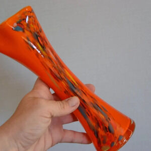 Vintage hand blown vase. Ruffle top. Possibly Czech glass or European of some sort.