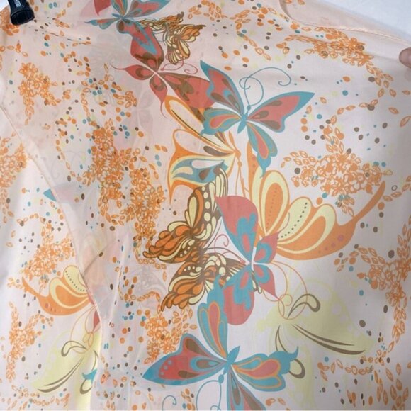 5/$25 Zhenqing Peach Semi Sheer Butterfly Floral Scarf