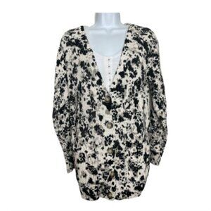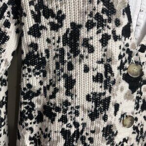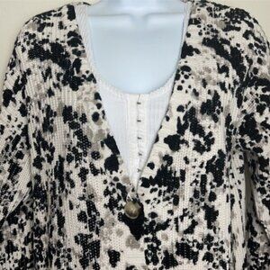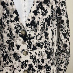 -Animal print cotton shaker knit cardigan in shades of grey, charcoal, & black