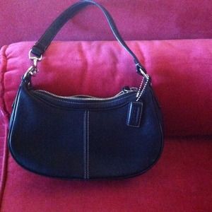 Black leather w/ silver hardware. Outer pocket on outside back of bag. Bought from another Posher but too small for me. Very good condition. Approx. 5.5" high x 9.5" wide x 2.5 " deep. Note 2 very small scuffs close to each other at edge of purse.