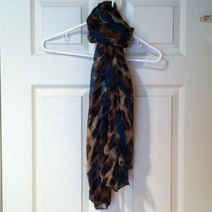 Gorgeous leopard print scarf with giant open teal hearts throughout the pattern. Very soft.