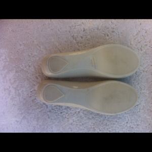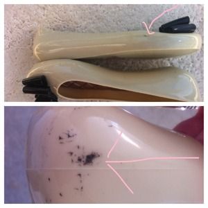 Pre-loved DIZZY shoes in women size 10. Beige with black bows. They have a little open toe. They are super cute on and comfortable. They mold to your feet.. I have pointed some black marks that are on them. I didn't clean or try to take off. You can not see these marks when you have the shoes on. I got them in Boston at a boutique.