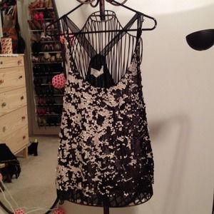❌SOLD❌Cream and black sequin top