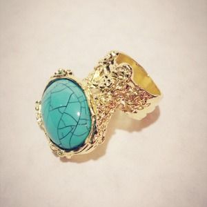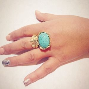 Brand new! Gorgeous blue gem stone with gold tone ring! Such a must have piece. Definitely a eye catcher! Everyone will be talking about how nice your new ring is😉 let me know if you have any questions! Size: 8!💋