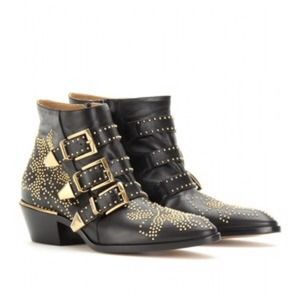 Heel measures approximately 40mm/ 1.5 inches. Chloé's 'Susanna' boots are one of the label's most sought-after designs. This black leather pair is decorated with gleaming gold studs and buckled straps. Take your cue from the style set and team them with skinny jeans. Worn a few times but in excellent condition, come in original box with dustbag. 100% authentic. Sold out everywhere!