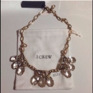 Authentic and NWT. Sold out J.Crew necklace with brassy gold hardware and three white crystal jewel drops accented with pearls. Lobster clasp closure with signature disc charm. Includes box and jewelry pouch. ❌❌NO TRADES. NO PP❌❌tradesy