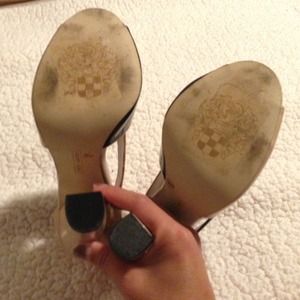 @euphoria12 I added a pic for you! The bottoms are a little dirty because of the sticker glue residue, but it should come off with goo gone. I only wore them once and then realized I can't walk in heels π I noticed a little bit of scuffing (4th pic, barely noticeable), but if you're interested we can work a fair price out π