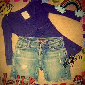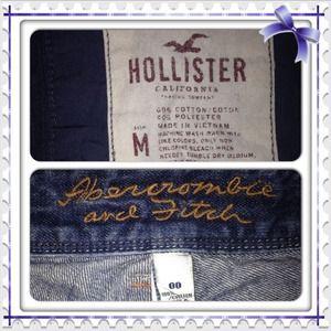 Both gently used.. You have a navy blue Hollister 3/4 sleeve top with an empire tie waist and a pair of distressed denim shorts by Abercrombie and Fitch.. I can separate if needed.. Shorts are 00 and top is a medium..