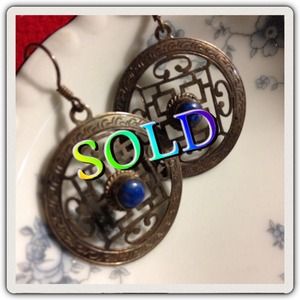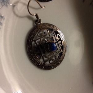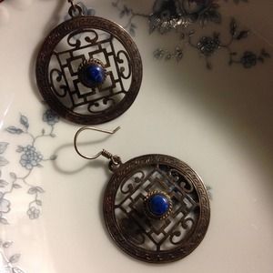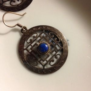 Sterling Silver Tibetan earrings Lapis center