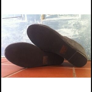 Adorable, brand new, never worn grey flannel booties, made of all man made materials. I bought these without trying on, and they simply are a bit big on me. Kept them hoping that "one day" they'd fit, but I need to just get real! Fit more like an 8.5*, as I am a true 8 and they are too big. *Labeled as an 8. Don't remember what I paid for them, just making an educated guess.