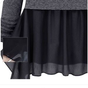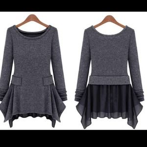 REDUCED๐ปNWT! Stretchy gray material and black chiffon accents this awesome top. Chiffon is in the back and the front is all gray with two "fake" pockets. Labeled a medium but will fit a small and medium because of its great stretch๐ ๐ซNO TRADES/PRICE FIRM๐ซ๐HP!๐