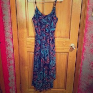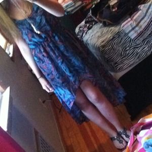 Stunning gown only worn once. Has a feather pattern throughout it and has spaghetti straps.