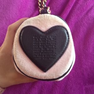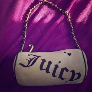 Oval shaped Juicy purse with gold and leather straps. There's one pocket inside. Both zippers contain a stylish gold "J" NO rips. Few stains (as seen in the photos) Perfect for a day at the mall. 💕Fun, Girly, & Stylish 💕