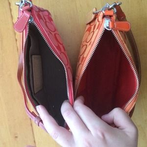 Very cute orange and coral coach bags! Outside do show some wear as shown in pictures inside of orange also shows some wear. Will sell separate or together offers welcome