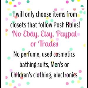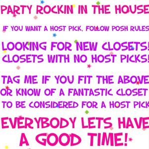 PLEASE consider me for a host pick! As you can see in my closet, I spend a lot of time putting outfits together and make sure to follow all posh rules! I would really appreciate it! 🙏🙏🙏