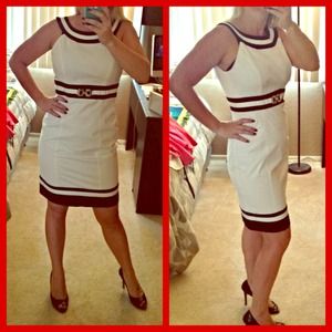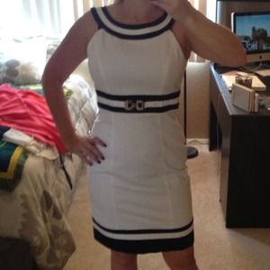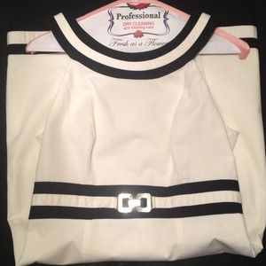 Classy and flattering white with black trim dress. The pictures don't do this dress justice! Looks so good on. Made my waist look smaller and my chest look bigger...loved it! Was one of my favorites, if I lose a few pounds before it sells I'm keeping it!! 97% cotton, 3% spandex. Bundle and save 💰📦 Open to offers 🙋