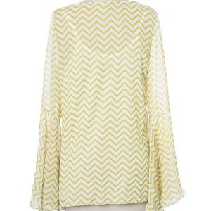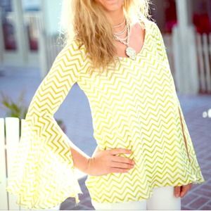 This Judith March green and cream chevron top with bell sleeves is adorable. It's a true size medium and comes with a tank to wear underneath. The sleeves have a fun slit up the side to make the sleeve bell out for that fun look. This top is the perfect transition piece. New without tags, In excellent condition.