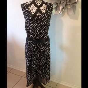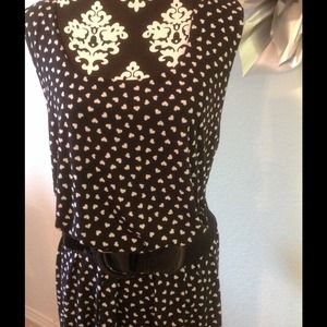 Plus size adorable Hi-Lo blouson dress! Black/white hearts Poly/Span mix. ****Belt not included.