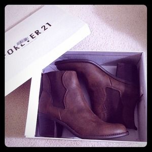 Brown •• Size 7 (true to size) •• NEW and only worn to model for the pictures above. Too big for me!