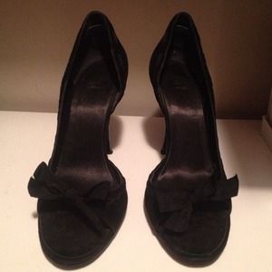 Pre-loved open toe black pumps. May need new heel tips soon, price reflects this. Come in original box.