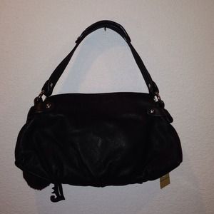 Never been used authentic Juicy Couture purse in a dark chocolate brown color. Beautiful soft leather with silver hardware. Features a silver juicy heart on the bottom right corner with a chain and pom poms. Tan printed interior with one zip pocket. Comes with original dust bag.
