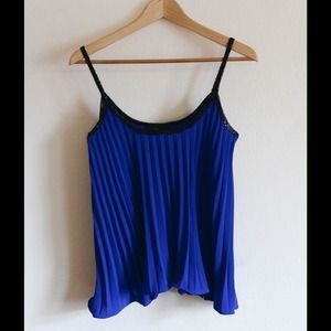 Beautiful Blue pleated loose fitting tank with black sequin trim. NWOT