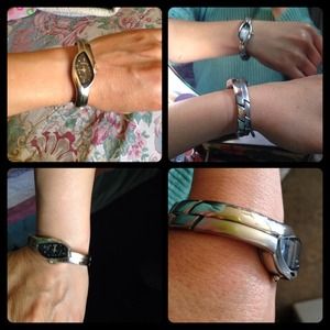 authentic watch, bracelet style, has a small scratch on the glass, works perfect, has new battery, 7 inchs wrist.
