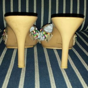 Beautiful pair of heels sandals by BAKERS, made of wood with multicolor sequins. Great used condition. Size 9B. "FIRM PRICE"