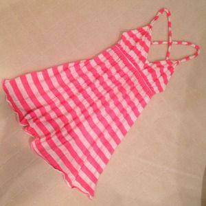 Super cute Small Neon Hot Pink and White Striped Sundress with crisscross twisted straps. Never worn, it was too big for me