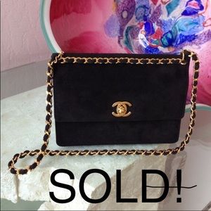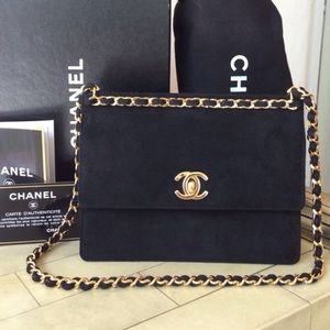 NWT RARE Chanel Black Suede & Gold Metal Bag.