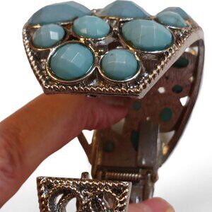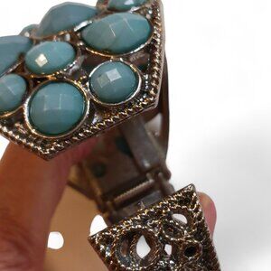 *5/35* Faux Faceted Turquoise Cabochon Antiqued Silver Cuff Bracelet