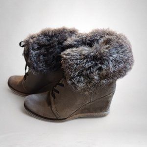 *5/35* Pegabo Tan Suede Faux Fur Trimmed Lace Up Winter Boots Size 6.5