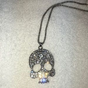 Rhinestone Skull Necklace w Silver Chain