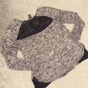 ❌Bundled❌Easy breezy grey tunic with sheer lace insets at the neck, back and sides with contrast stitching and vertical seams. Sz 14/16 New without tags.