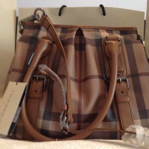 Brand new with tags and dust bag Northfield smoked. Color is tan. Handles are leather, the rest is Pvc. Very durable. Comes with a long handle which you can use as a crossbody as well.