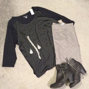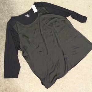 ❌Bundled❌Black top with satiny front with hi-lo hems with 3/4 sleeves and front faux pocket. Sz 18/20