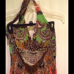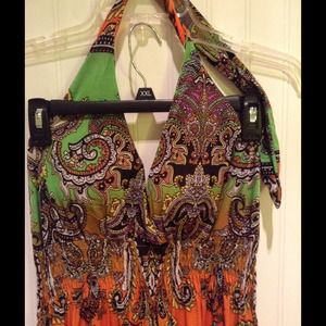 Awesome women's 1x-2x halter dress. Lightly padded cups. Adjustable halter straps. Elastic back.