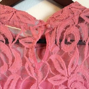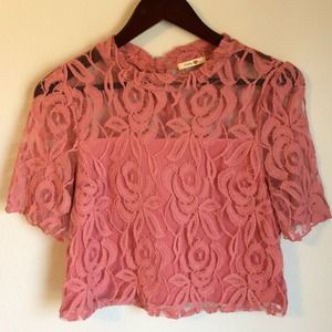 Adorable rose lace top with overlay on front & just lace on back. Really adorable, crop top. Cute keyhole button on back. 17" length