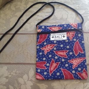 This is a perfect little festival bag! Long strap makes it perfect for crossover style look, but strap can also be shortened by knotting strap to desired length:) gorgeous batik style patches give this a universal look to go with many colors. Zip front pouch, holds most wallets and small items:) happy shopping!