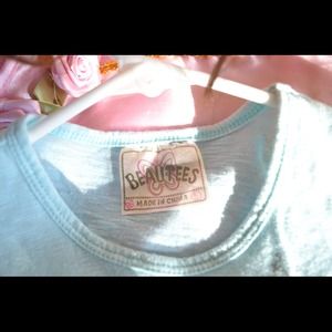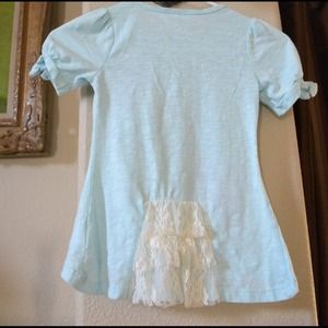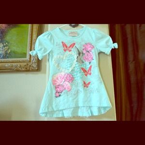 Girls tee shirt in baby blue with lace design on it and butterfly's, bought at Nordstrom, excellent condition
