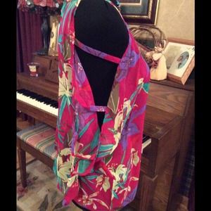 Beautiful tropical print ladder sleeve blouse.. Colors of the tropics.. Puts you in the a vacation state of mind.. Semi-sheer material for staying cool on those hot summer days while staying with the latest fashion trends.. NWT💖