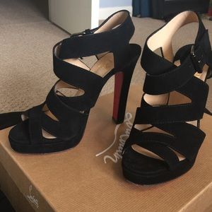 Black Suede Zig Slightly Used** no dust bag** include the replacable heels in the mini dust bag. Super comfortable because of the crisscrossed straps. Suede is in mint condition. Worn less than 5 times. *NO TRADES