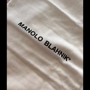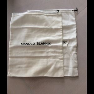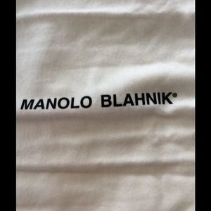 White with a black drawstring, and the Authentic MANOLO BLAHNIK logo. Use to cover your favorite pair of originals, or any pair that needs special care. These original covers have multiple uses and can be hand washed in the event they get dirty. This particular pair of covers came off my FIRST PAIR of MANOLO'S. They were $800 and took me almost three hours to decide to treat myself with such beautiful shoes on my birthday. Soon, I owned over 20 pair of MANOLO'S. SOLD AS PAIR ONLY