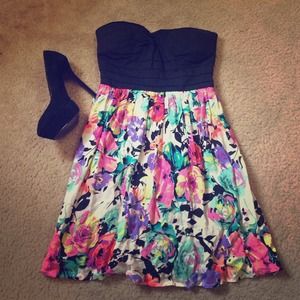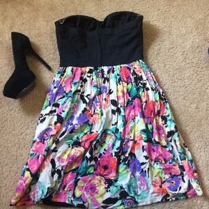 This multi-colored floral dress is perfect for an easy effortless look. Pairs well with heels and sandals! Stretch top for a perfect fit
