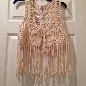 NWT Soft and cozy braided fringe vest. Ties in front. Great for layering! Size Large (Juniors) Cloth necklace available in a separate listing.