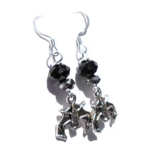 These stunning earrings feature grey and black crystal rondelle beads, which add a ton of sparkle next to the bat charms.