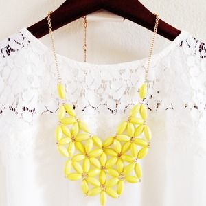 New with tag! Bright yellow geometric floral statement necklace with gold tone chain and adjustable length. The perfect summer necklace! β’350375β’