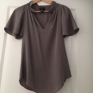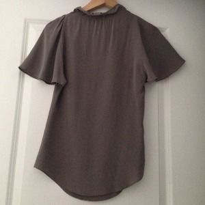 ****sold***bundle*****Brown 100% silk blouse, v neck with cute neck details and flowy sleeves. Used, in great condition. Size XXS, but fits like a XS. No returns.