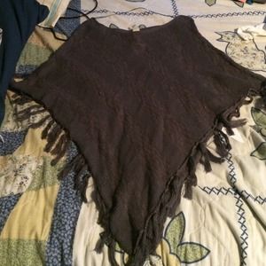 Never worn charcoal knit fringed poncho size: S/M